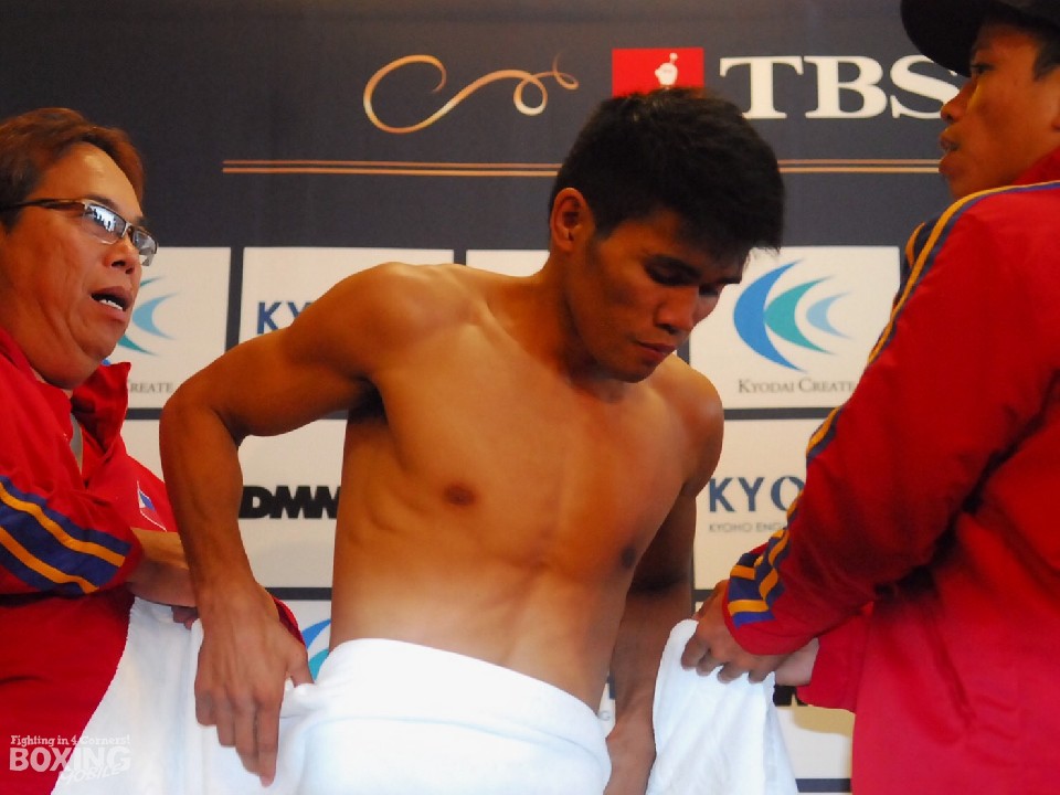 WBO世界バンタム級チャンピオンで明日、大森将平(Woz)の挑戦を受けるマーロン・タパレス(比)が1回目の計量で800グラムオーバー。2時間後に再計量することとなった。(※22日13時現在)。一方、挑戦者の大森将平(Woz)は100グラムアンダーの53.3キロで、前日計量をクリアしている。