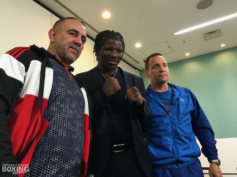 18人兄弟の7番目というカメルーン(※一夫多妻制)出身のフランス国籍。アマ時代にトレーニングで訪れたキューバの選手達からは"フェノメノ=※スッゲーヤツ"と呼ばれている2児のパパは、末っ子で4歳の長男に「村田を倒してきてね」というエールで見送られたという。普段は穏やかな性格と自身を分析するトップコンテンダーも「リングではライオンになる。勝つ自信は100%」。10時間以上かかった長旅にも疲れを見せず、時折笑顔を見せながら丁寧に記者の質問に答えた。