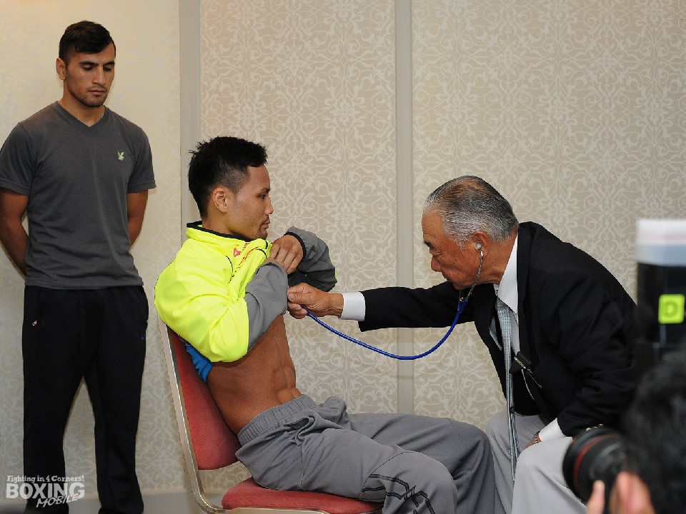 5月20日、東京・有明コロシアムでWBC(世界ボクシング評議会)フライ級王座に挑戦する同級1位の比嘉大吾(21=白井・具志堅)が17日、王者ファン・エルナンデス(30=メキシコ)とともに予備検診に臨み、それぞれ異常なしと診察された。