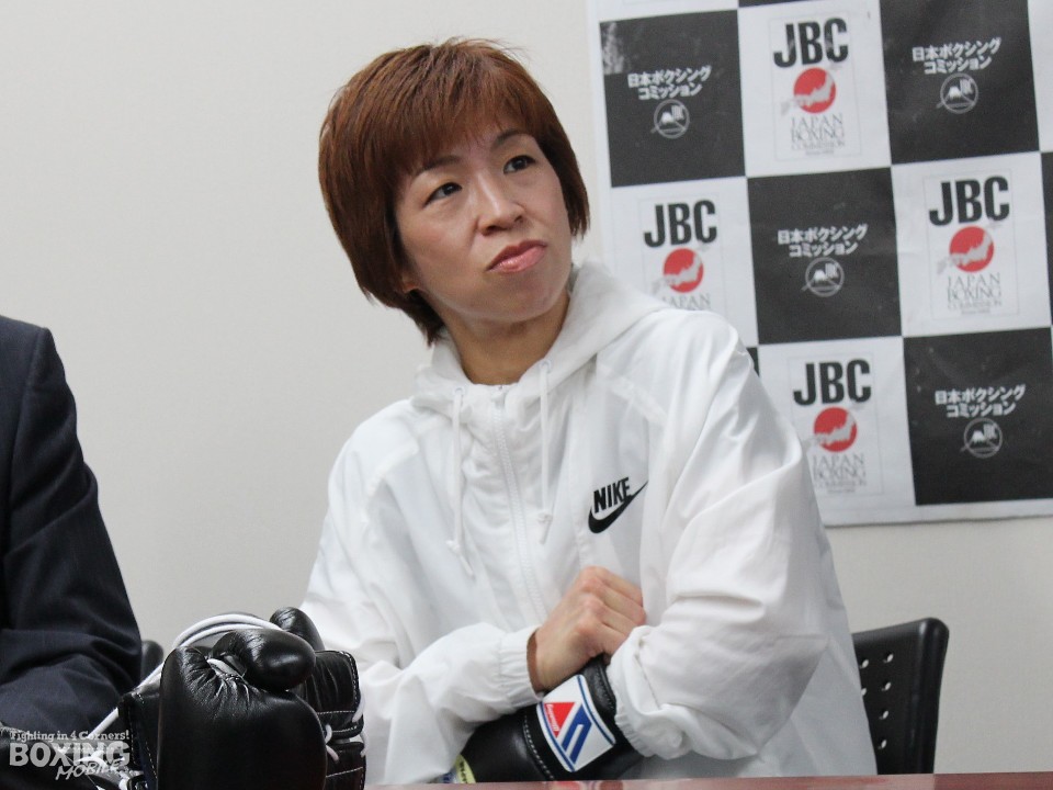 6度目の世界挑戦となる江畑は「チャンスをくれたジムに感謝している。今まで以上に練習してきた。明日は20年間のボクシング人生の集大成を見せたい」と意気込みを語った。塙の印象を「積極的に攻撃を仕掛けてくる選手。巻き込まれないように気を付けたい」。「連勝の勢いはあるが、私の持っているキャリアで勝ちたい」と強く拳を握りしめた。