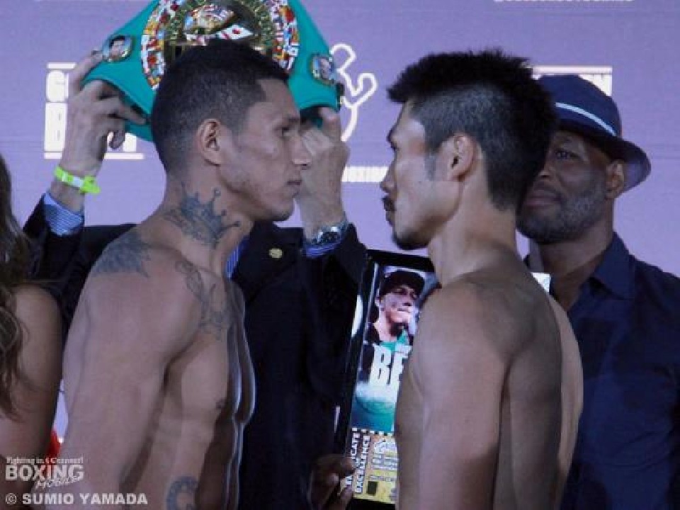 15日のイベントはスーパーフェザー級のダブル世界戦となっており、セミ格では内山高志(ワタナベ)に連勝したWBAスーパー王者ジェスレル・コラレス(パナマ)がロビンソン・カステジャノス(メキシコ)を相手に2度目の防衛戦に臨む。メインより先に行われた計量ではコラレスが129.6ポンド(約58.7キロ)、カステジャノスが129.4ポンド(約58.6キロ)だった。計量後、両者は向かい合ってポーズをとったが、ともに白い歯をみせるなど友好ムードだった。戦績はコラレスが23戦21勝(8KO)1敗1無効試合、カステジャノスが36戦24勝(14KO)12敗。オッズは7対1でコラレス有利と出ている。