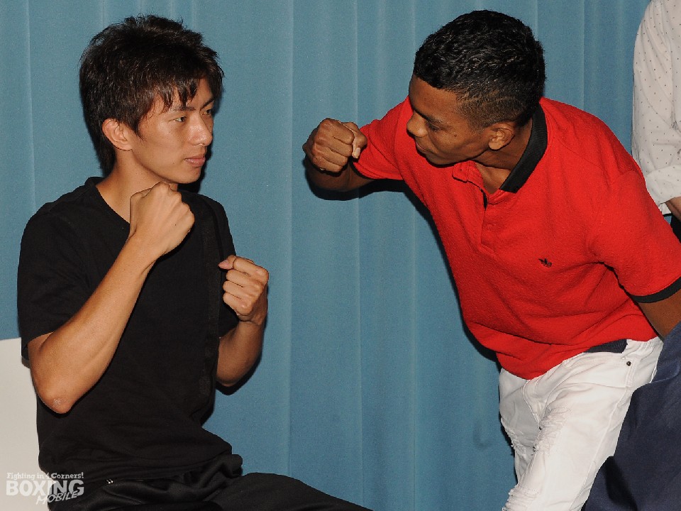 続いて会見となり、身長・リーチとも挑戦者を約3p上回った田口は、初対面のバレラについて「想像していたとおり。自分と同じぐらいの身長だが苦手じゃない」とコメント。頻繁にスイッチを繰り返す厄介な相手だが、「対策はバッチリ。どんどんボディを打って弱らせていきたい」と話し、「僕は夏場の方が調子が良い。コンディションは万全」と自信を示した。