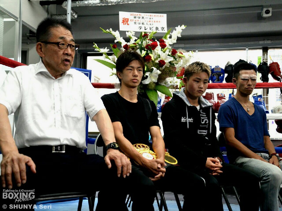 また、日本スーパーフライ級王座防衛に成功した船井龍一(ワタナベ)も会見に同席。「こんな顔になっちゃいました」と両まぶたに大きなバンソウコウを指差して記者の笑いを誘ったが「これから日本やアジアの強い選手と試合をして、会長からゴーサインが出れば世界に挑みたい」と抱負を語った。これには渡辺会長も「よく頑張っているしキャリアもついてきたのでいつでもいける」と世界挑戦のチャンスを探ることを示唆した。
