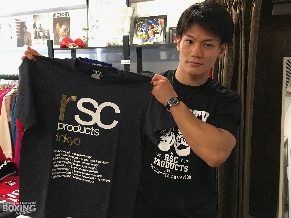 日本スーパーウェルター級王者で8月10日(木)に後楽園ホールで初防衛戦を迎える井上岳志(ワールドS)を直撃。後楽園ホールのある水道橋駅西口から徒歩で7分のところにあるrscproducts 東京店の一日店長を務めた7月2日にゆっくりと話を聞いた。