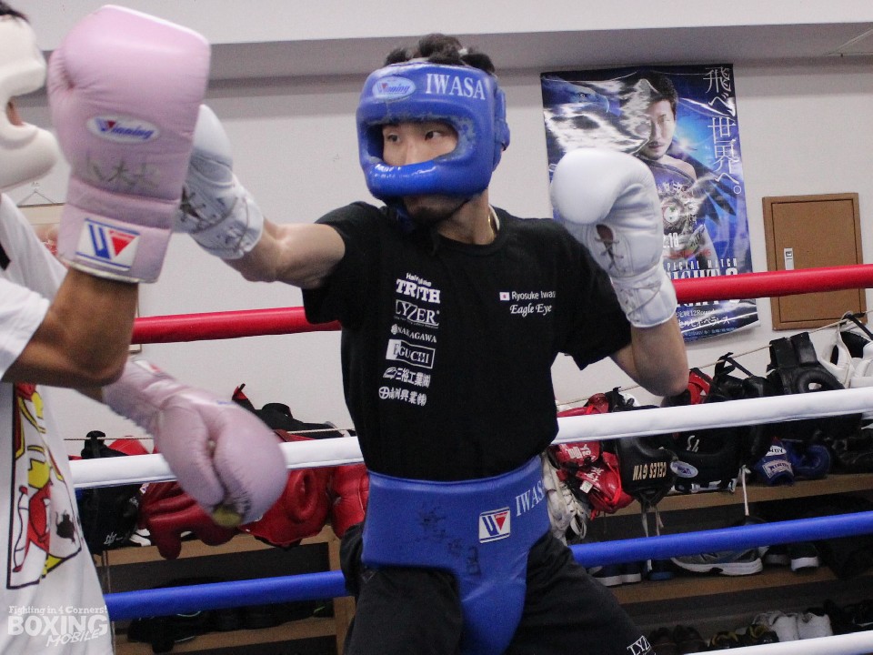 会見後に練習を行った岩佐は2Rのシャドーボクシングの後に同門で2011年東日本フライ級新人王の青山功(28)と2Rのスパーリングを披露。相手のパンチを払いのけるとジャブで突き刺し、左ショートカウンターを決めた。さらに上下にコンビネーションを散らし絶好調をアピールした。その後はサンドバッグを2R、帽子に結んだテニスボールを1R叩き終了した。