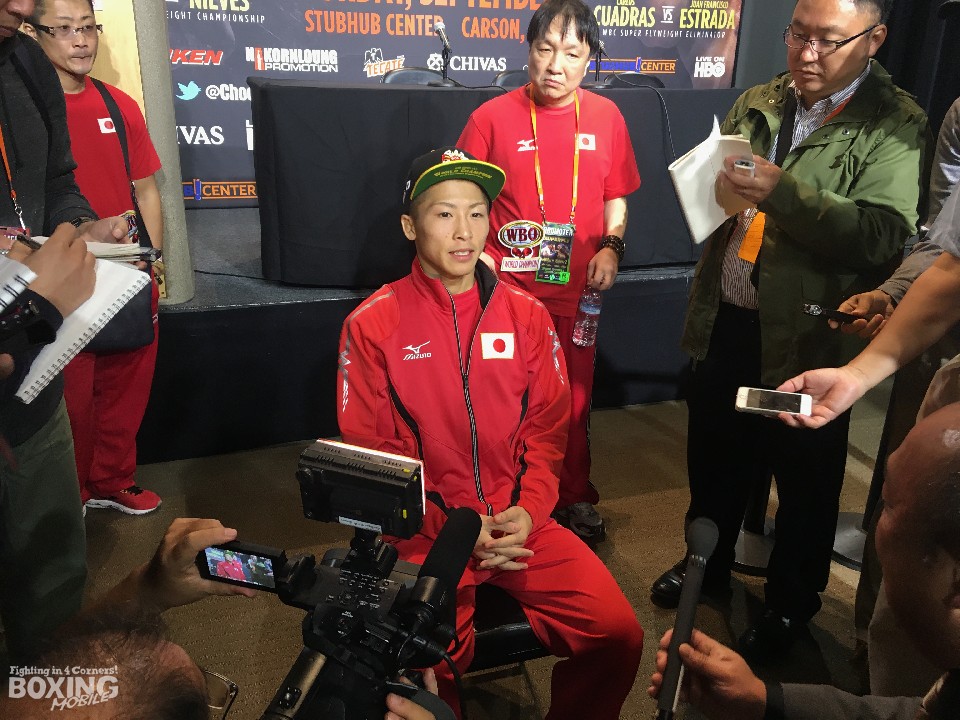 涼しくなった夕暮れ時に米国デビュー戦を迎えたWBO世界スーパーフライ級チャンピオンの井上尚弥(大橋)が試合後、共同記者会見の前に日本人記者の囲み取材に応じた。また、メインカード3試合の勝者は、それぞれ記者会見で各国の記者の質問に答えた。