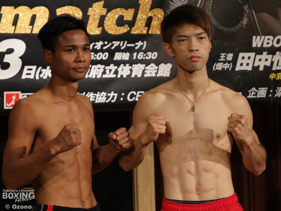 WBO世界ライトフライ級チャンピオンの田中恒成(畑中)と、挑戦者で同級13位のパランポン・CPフレッシュマート(タイ)が12日、大阪市内のホテルで調印式と前日計量を行うため姿をみせた。2度目の防衛戦を迎えた田中は「圧倒的な内容で勝ちます」と、意気込んだ。