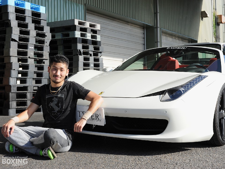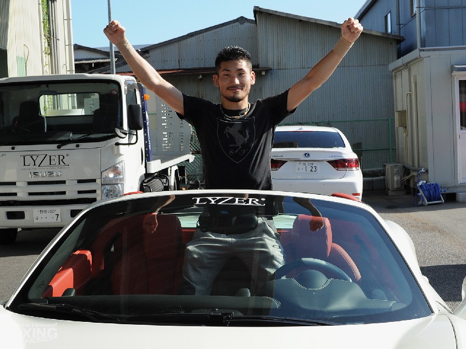 これは岩佐を6年前からスポンサードし、自動車部品ブランド「LYZER」を運営する(株)ワールドウィング中川貴之代表取締役が世界チャンピオンになった暁にはフェラーリをプレゼントすると約束していたもので、車両価格は3000万円。日本チャンピオンになってから購入したベンツSLのほか、日常の足としてハイラックスを所有するほどの車好きの岩佐は、フェラーリのオーナーになることは世界チャンピオンになるのと同等の夢だった。