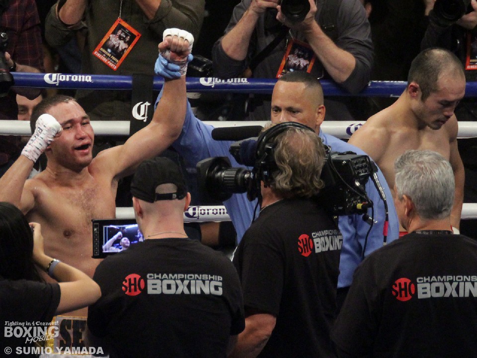 試合はリピネッツが強いジャブを軸に序盤から距離を意識して戦い、主導権を掌握。プレッシャーをかけ続けた近藤も、打ち下ろしの右を効かせる場面はあったが、攻撃が続かず明確なポイントには結びつかなかった。判定は117-111×2、118―110の3-0でリピネッツに軍配が上がり、テレンス・クロフォード(米)が8月に返上して空位になった王座を獲得した。戦績13戦全勝(10KO)。近藤は37戦29勝(16KO)7敗1分。