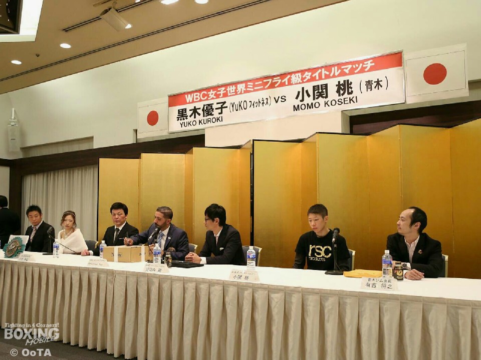 明日17日、WBC(世界ボクシング評議会)女子ミニフライ級タイトルのビッグマッチを控える王者の黒木優子(26=YuKO)と挑戦者でWBCアトム級王者の小関桃(35=青木)が、福岡市内の博多サンヒルズホテルにて調印式と前日計量を行った。