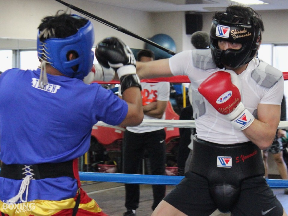 今回招聘したフィリピン出身のスパーリングパートナーの2人とは、これまでにもトレーニングをともにしたことがある。WBC世界バンタム級12位のマイケル・ダスマリナスは、大振りの連打で仕掛けてくるネリを想定した動きを再現。これを山中はしっかりガードすると隙を見て左ストレートをボディに打ち込んだ。