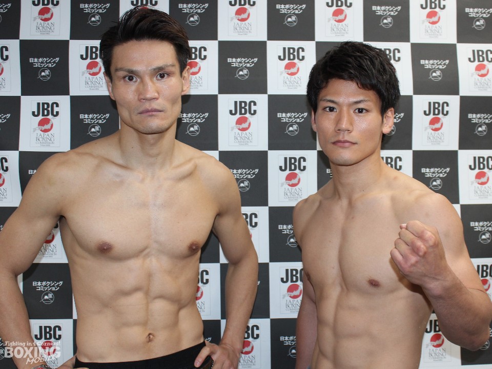2冠王者の井上はリミットちょうどの69.8kgでパス。身長差が10pあるサウスポー野中との対戦になるが、「アマ時代には188pの選手と戦ったこともあるので問題ない。プロでは初めてになるが、同じくらいの身長の選手とスパーリングをしてきた」と万全を強調。昨年は3本のベルト(日本王座は返上)を獲りブレイクをはたした井上。「デビュー前は32歳で世界王者になりたいと思っていたので、想像以上に早くチャンスが来た。ここを勝って挑戦者決定戦に進みたい」と気を吐いた。