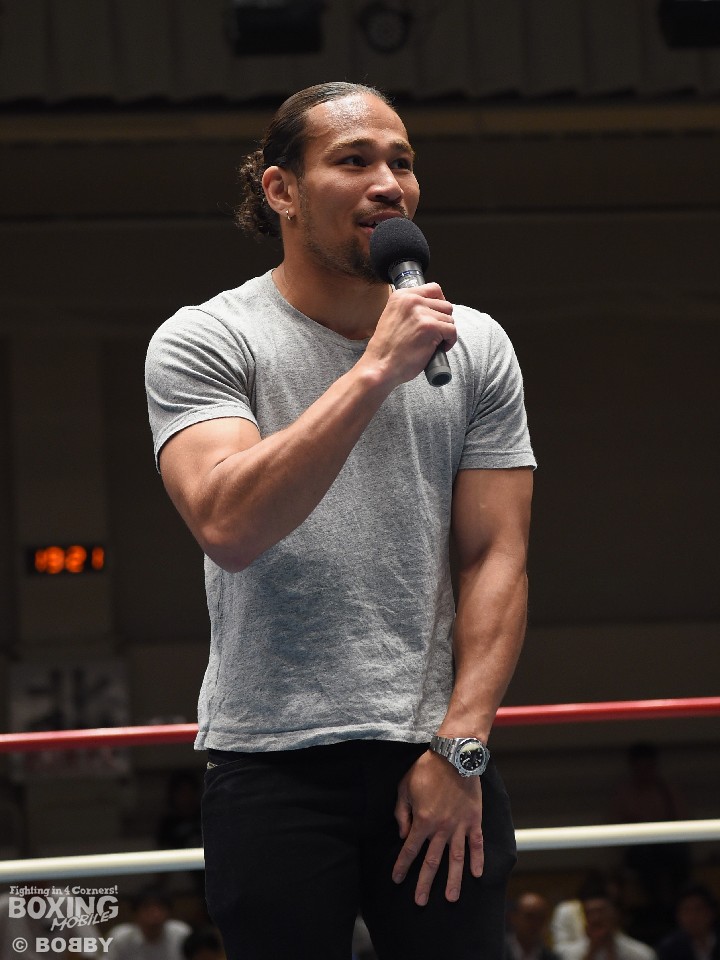技能賞は竹迫とMVPを争った日本スーパーバンタム級王者の久我。7月27日に元OPBF東洋太平洋王者の和氣慎吾(FLARE山上)とのV3戦を控える久我は、「盛り上がる試合をして、必ず勝って世界に行きます」と宣言した。