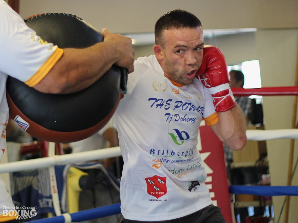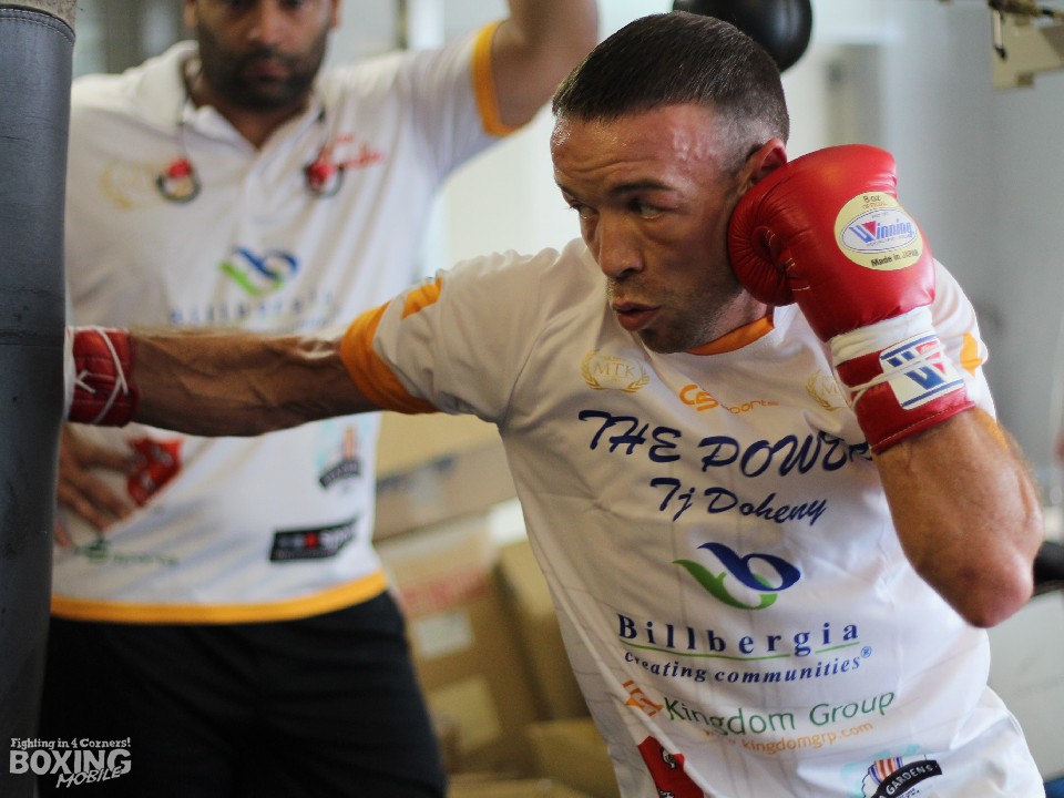 IBF(国際ボクシング連盟)スーパーバンタム級1位のTJ・ドヘニー(31=豪/アイルランド)が10日、都内のジムで報道陣に練習を公開した。ドヘニーは16日に後楽園ホールで王者の岩佐亮佑(28=セレス)に挑戦する。昨日、初来日したドヘニーは疲れも見せず、精力的に動き汗を流した。