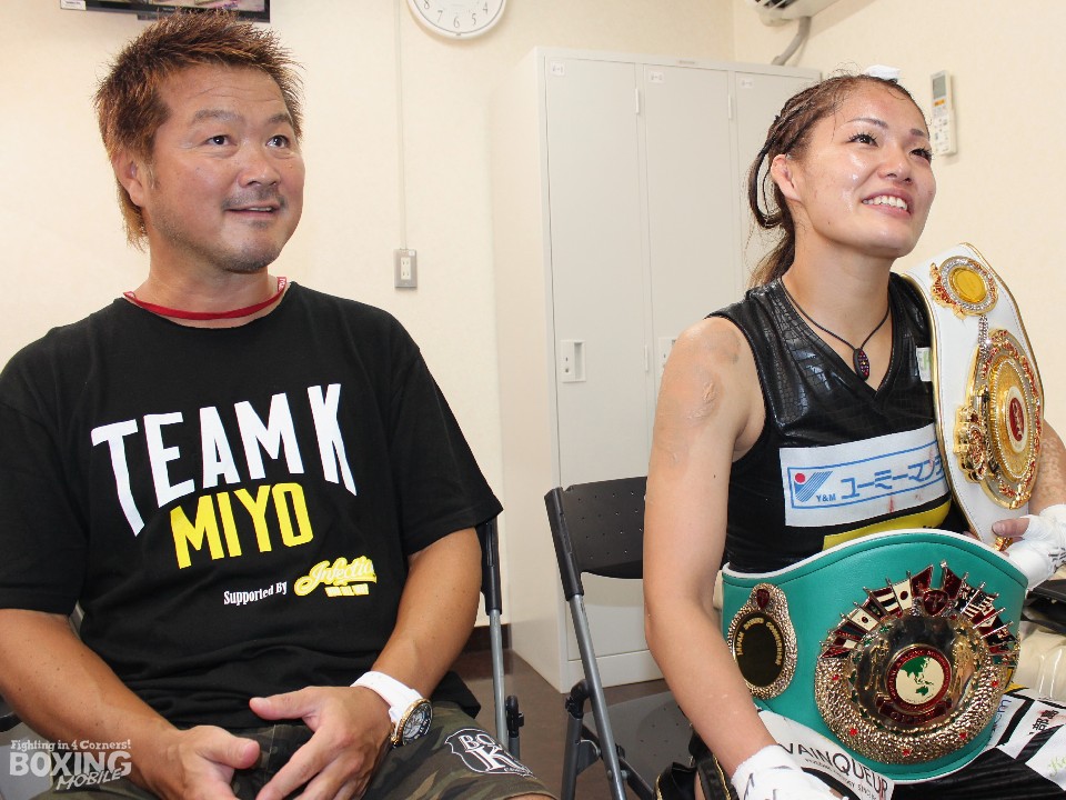 会見に同席した加山利治会長は「ショート連打が出るようになって少しづつ進歩している。タイミングの良い右が当たっていたのでまとめていたらストップに持ち込めた」と語ると、「日本では馬力があるから通用するが、世界王者は強いからやってみないと分らない。オファーが来たら海外でも挑戦させたい」と話した。この日の挑戦者決定戦に勝った若狭与志枝(花形)との対戦にも「状況次第だが日本王座も防衛させたい」と、今後は2つのベルトを守っていくと明言した。