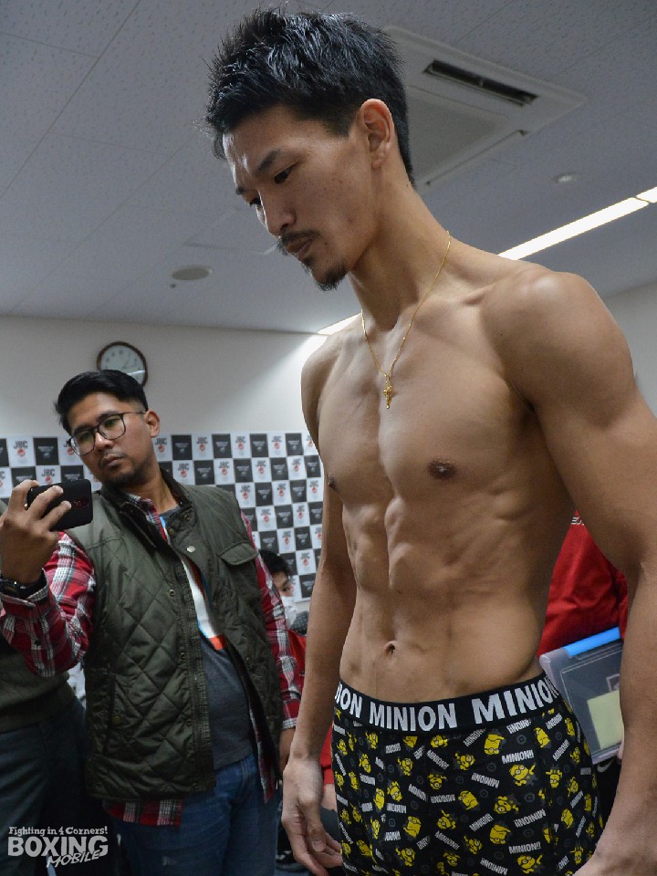 ドーピング違反により1年間のライセンス停止処分を受けていた尾川堅一(帝拳)が明日2日、後楽園ホールで開催される「ダイナミックグローブ」のメインで復帰する。その前日計量が1日に都内の日本ボクシングコミッション(JBC)本部事務局で行われ、フィリピン・ライト級王者ロルダン・アルデア(比)と132ポンドの契約体重で戦う尾川は、リミットの59.8kgで一発パスした。