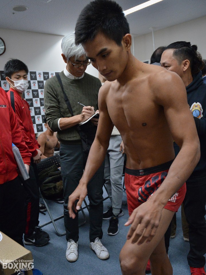 対し、昨年4月に続き今回が2度目の来日となるサウスポーのアルデアは、300gアンダーの59.5kgで計量を終え、足早に会場を後にした。
