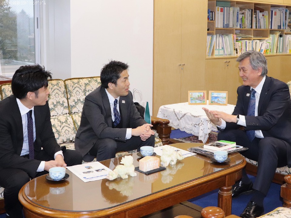 長谷部学長は「現在、野球、アメフト、スポーツチャンバラなどのスポーツで好成績をあげている同校だが、その卒業生がボクシングの世界王座に挑む選手を育成していることを大変喜ばしく思う」と新田会長と黒田にエールを送り、世界王座獲得後にはあらためての訪問を要請した。