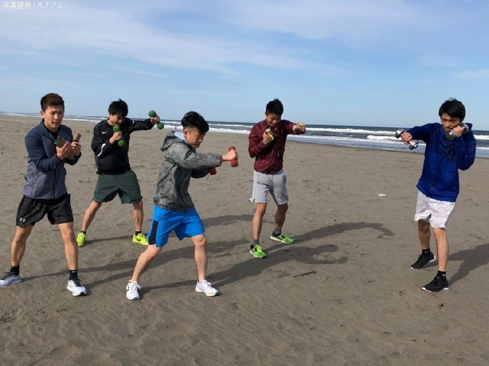 日本フライ級王者の中谷潤人(21)を筆頭としたM.Tジムの精鋭たちが、26日から千葉県長生郡白子海岸で走り込みを中心としたキャンプを張っている。中谷は6月1日(土)に後楽園ホールで開催される「ダイナミックグローブ」のメインイベントで同級3位のウルフ中野(35=橋口)を相手に初防衛戦に臨む。