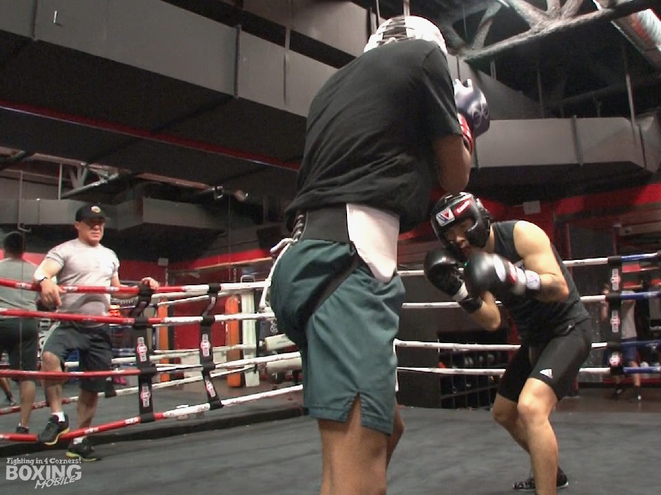 井岡はイスマエル・サラス氏、佐々木修平氏のトレーナーコンビに加え、スティッチこと名うてのカットマン、ジェイコブ・デュラン氏の協力を得て、先月から8週間に渡る長期合宿を敢行。これまでアメリカ・ナショナルチームの選手らと100ラウンドを越すスパーリングを消化し、いよいよ最終調整に入る。