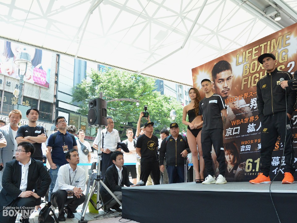 渋谷を代表するファッションビルの特別会場で行われたイベントということもあり、午前中にもかかわらず通行人が足を止めてイベントを見学。井岡は声援に手を振って応えていた。日本ではこのようなイベントに参加するのは初めてと語り、「試合に向けて盛り上がっていけば良いと思う」と笑みを浮かべた。
