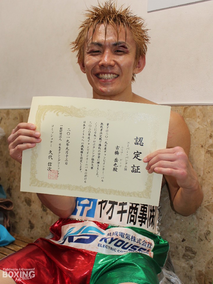 疲労困憊で控室に戻った古橋は、「捌き切れないと思っていたので、インサイドへのパンチと接近戦でのボディ打ちを徹底した。パンチでカットして焦ったが気持ちを奮い立たせた。メンタル面の強化に努めてどんな状況でも対応できるようになった」と激闘を振り返った。