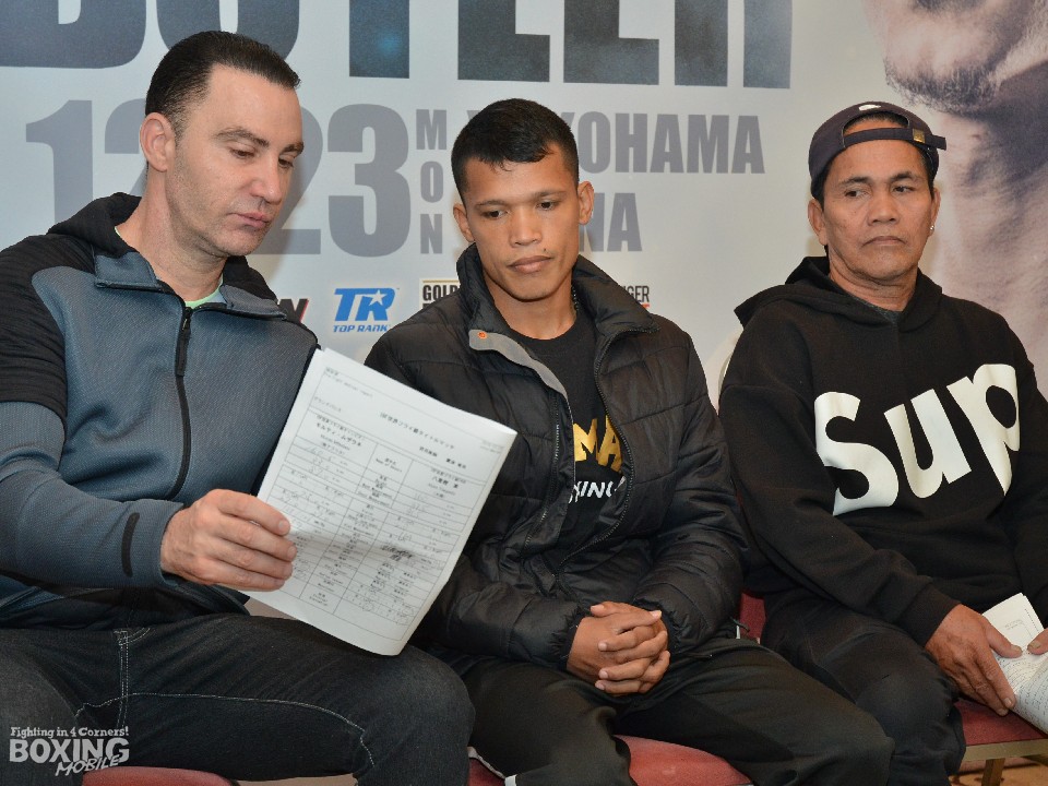 体格差を問われた拳四朗は、「フィリピンはリーチのある選手が多いので気にならない。距離感さえ掴めば問題ない」とコメント。続けて、改めてサウスポー挑戦者の印象を問われると、「オーラを感じなかったので1ラウンドでペースを支配できれば大丈夫」と答え、「動きも良いし疲れもない。今回は減量法を変えてギリギリになってから落とすので、体調は万全。しっかりと戦って圧倒するだけ。良い結果を見てもらいたい」と自信を示した。