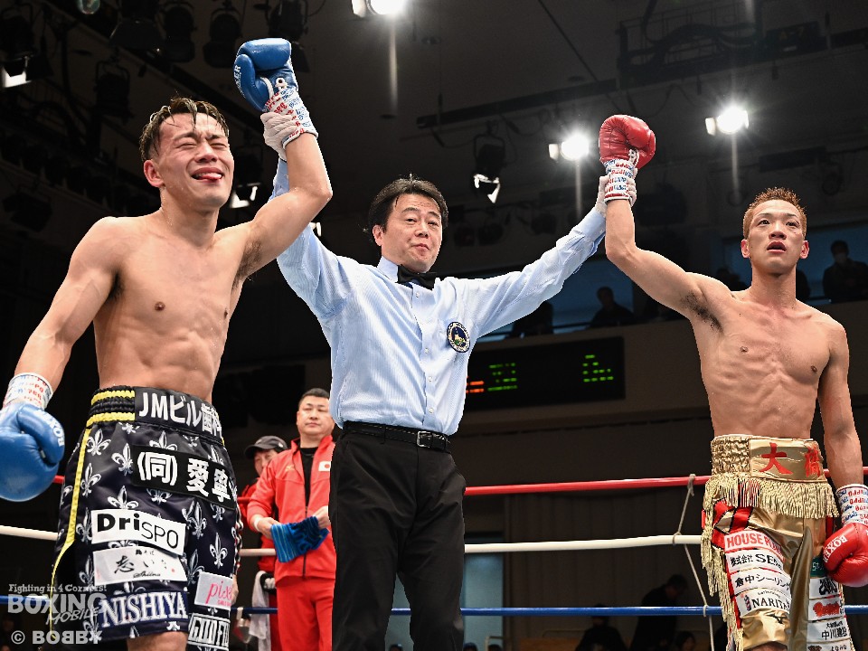 元WBC(世界ボクシング評議会)バンタム級王者の山中慎介氏がアンバサダーを務める「GODS'LEFTバンタム級トーナメント」決勝戦が28日、後楽園ホールで開催された「DANGAN233」のメインイベントで行われ、日本同級6位の中嶋一輝(26=大橋)と日本スーパーフライ級18位の堤聖也(24=角海老宝石)が拳を交えた。