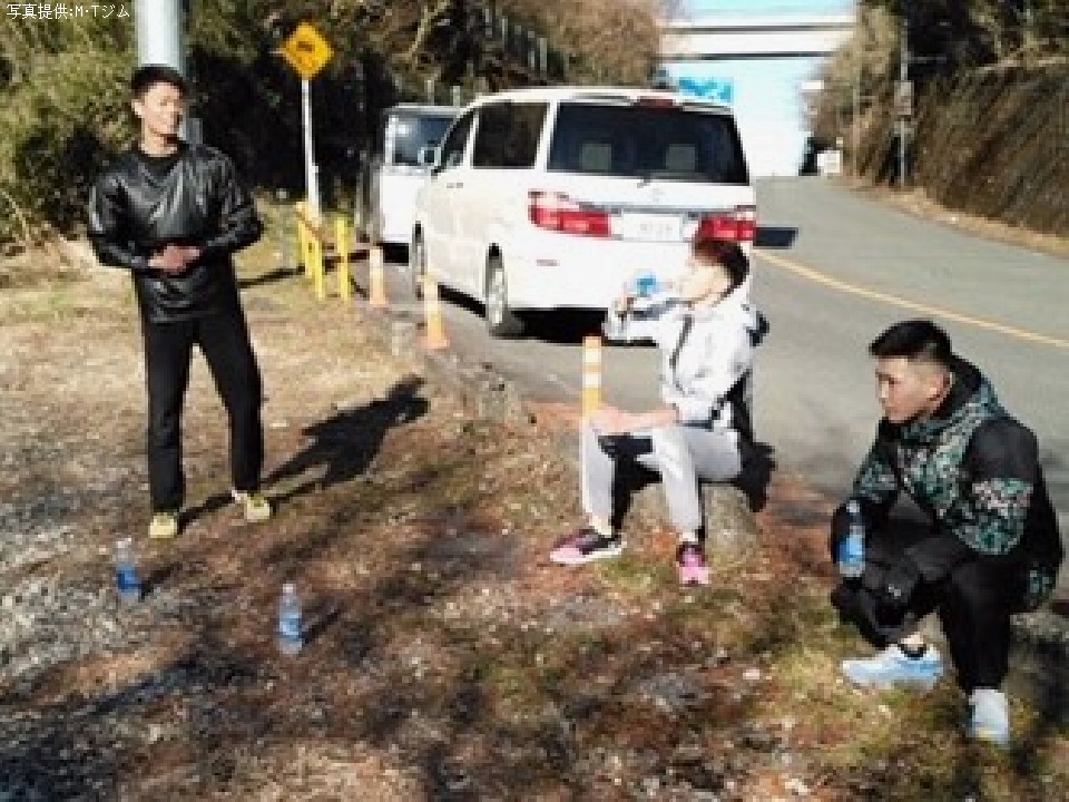 参加メンバーは同門の齋藤哲平(19)と小高稜貴(19)、アマチュア専門の伊豆山ボクシングスクールフィスト、SFKジムの選手。午前は西熱海の山を中心に長距離走、午後は砂浜をダッシュし心拍を上げるトレーニング。そして伊豆山神社に移動し837段の階段を駆け登った。