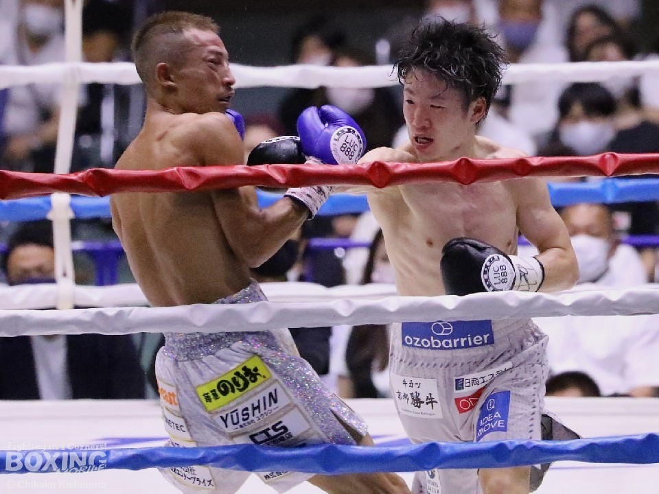 両者は、昨年9月に対戦しボクシング史に残る大激戦の末、矢吹が10回TKO勝ちで世界初挑戦で戴冠。拳四朗は8度防衛した王座を陥落した。