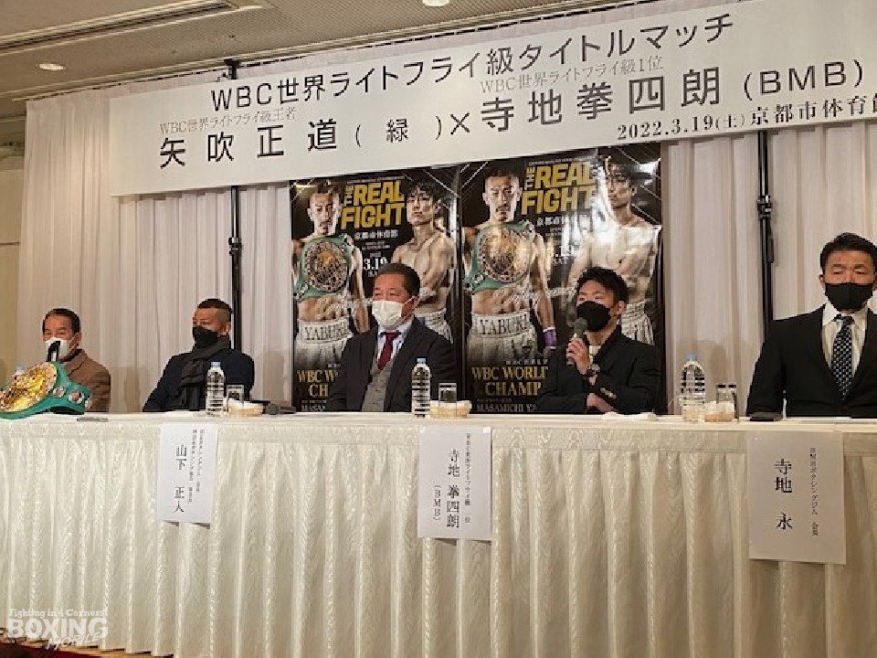 真正ボクシングジムは24日、新大阪ワシントンプラザホテルで記者会見を開き、WBC(世界ボクシング評議会)ライトフライ級タイトルマッチ、王者の矢吹正道(29=緑)対同級1位の寺地拳四朗(29=BMB)戦を発表した。試合は、3月19日(土)に京都市体育館で開催される「THE REAL FIGHT」で行われる。