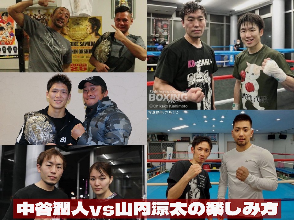 「中谷君はリーチの差を活かしてロングレンジでストレート系、左右アッパーを狙ってくると思うが、山内選手は中間距離より近い場所で、フックを思い切り振れる距離でぶん殴り合いに持ち込めれば面白くなる。中谷選手は、冷静で体が大きくて相手にとってパンチが見えにくいんじゃないかな。ストレートはスコンと飛んでくるし、アッパーもリーチが長いので変な軌道で来るのではないかと。山内君はガードが硬くて体が強い。フック系のパンチとボディ打ちが上手い。ただ、中谷君のパンチは角度が多彩なので、ブロッキングだけだと防ぎきれないと思う」