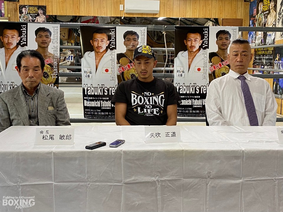 松尾会長は「マッチメークは大歓迎。勝ち方によっては、その次に世界戦も考えている」と、矢吹の世界王座返り咲きをバックアップすることを約束。現在空位となっている「WBOアジアパシフィック王座決定戦も検討している」とも語った。
