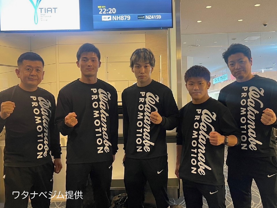 ワタナベジムのオーストラリア遠征チームが5日、羽田空港を発った。今回のワタナベジム陣営には、5月11日(水)にオーストラリアのニューカッスルで試合を行う三代大訓(27=ワタナベ)と富施郁哉(23=ワタナベ)の両選手に、サポート要員の重岡銀次朗(22=ワタナベ)が加わった。