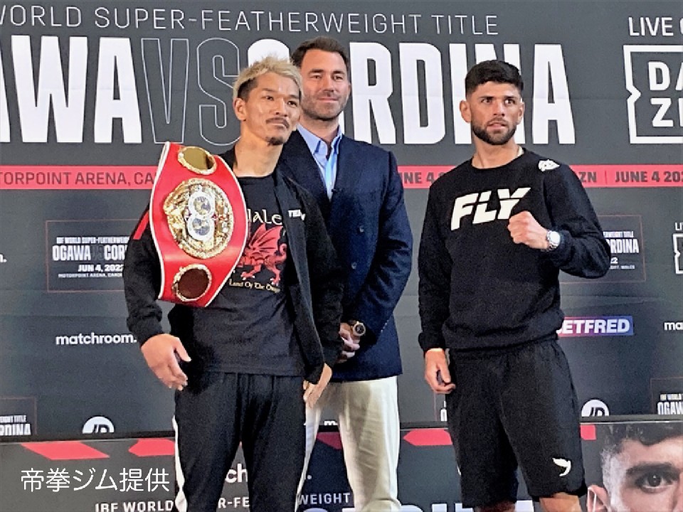 同級3位のジョー・コルディーナ(30=英国)を迎えての初防衛戦は、日本時間6月5日(日)に行われ、DAZNで午前3時からライブ配信予定。帝拳ジムを通じて尾川からコメントが届いた。