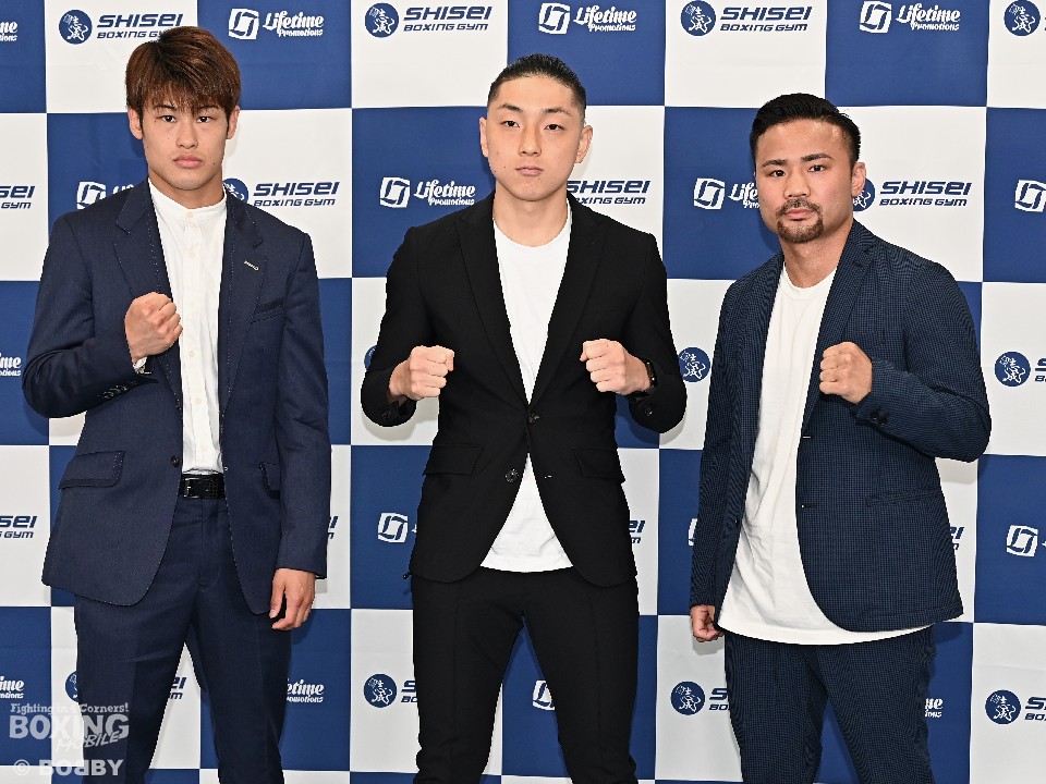 この日の会見には、元WBC世界フライ級チャンピオン比嘉大吾(26=志成)と元WBO-APフェザー級チャンピオン森武蔵(22=志成)に次いで、プロデビュー戦を8回戦で迎えるAIBA世界ユース選手権金メダリストの堤駿斗(22=志成)の3名が登場した。