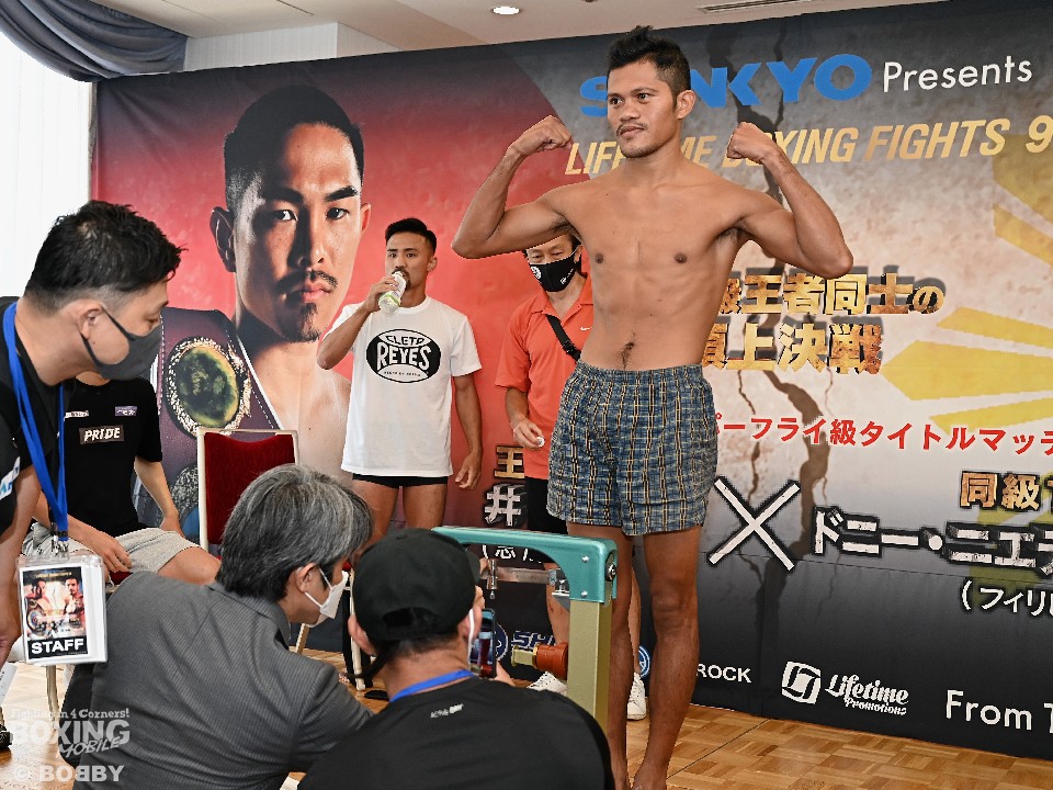 昨年4月以来の再起戦に臨む比嘉は、計量後に囲み取材に応じた。「良い感じで練習を積むことができた」と万全のコンディションをアピール。「明日は対峙してみて、最後はしっかりと倒す」と比嘉の代名詞であるKO決着を約束した。