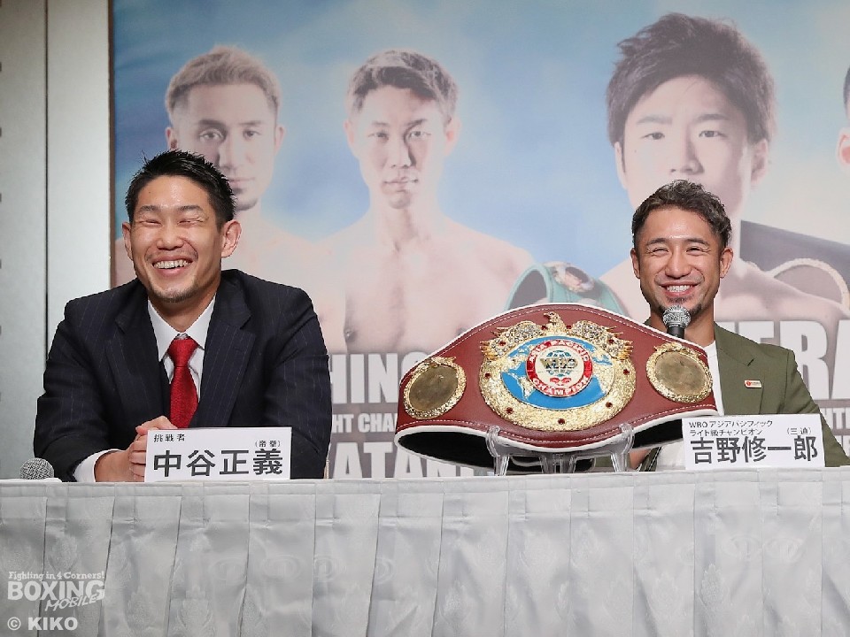 ライト級アジア2冠王者でWBC世界10位の吉野修一郎(30=三迫)と、WBC同9位の中谷正義(33=帝拳)による、アジア頂上決戦がついに実現する。発表会見が14日、都内のホテルで行われた。