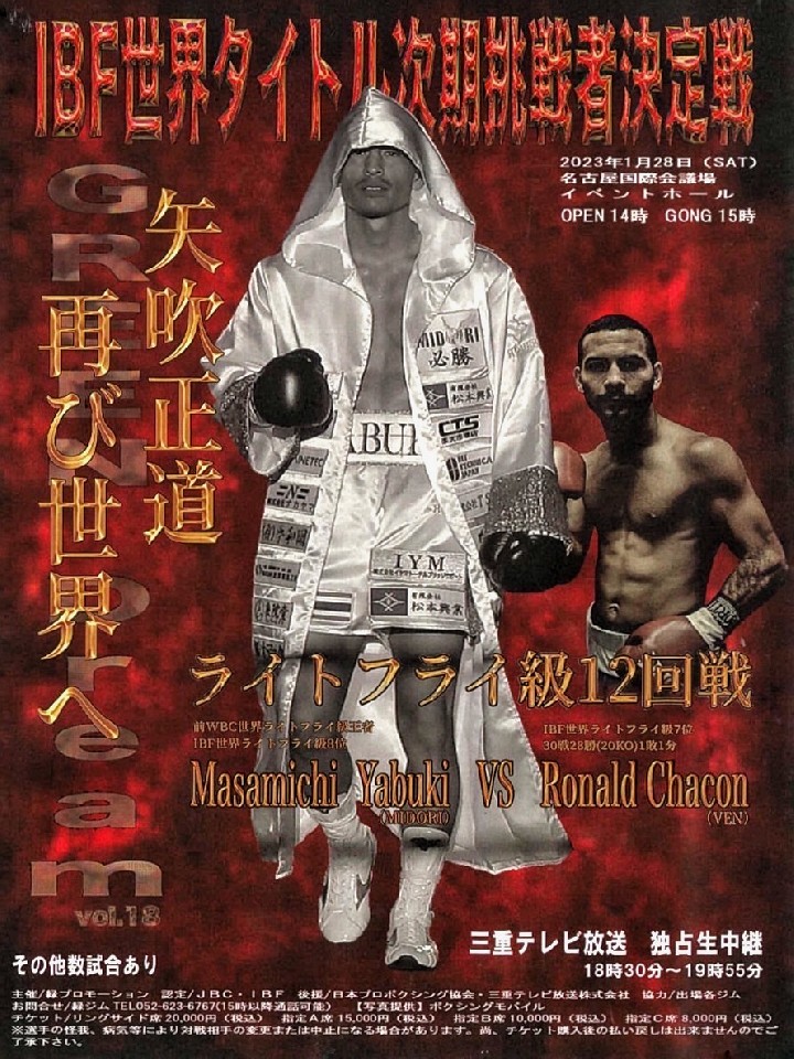 緑ボクシングジムは8日、前WBC世界ライトフライ級王者の矢吹正道(30=緑)対IBF世界同級7位のロナルド・チャコン(31=ベネズエラ)戦を、IBF世界ライトフライ級挑戦者決定戦として行うことを発表した。