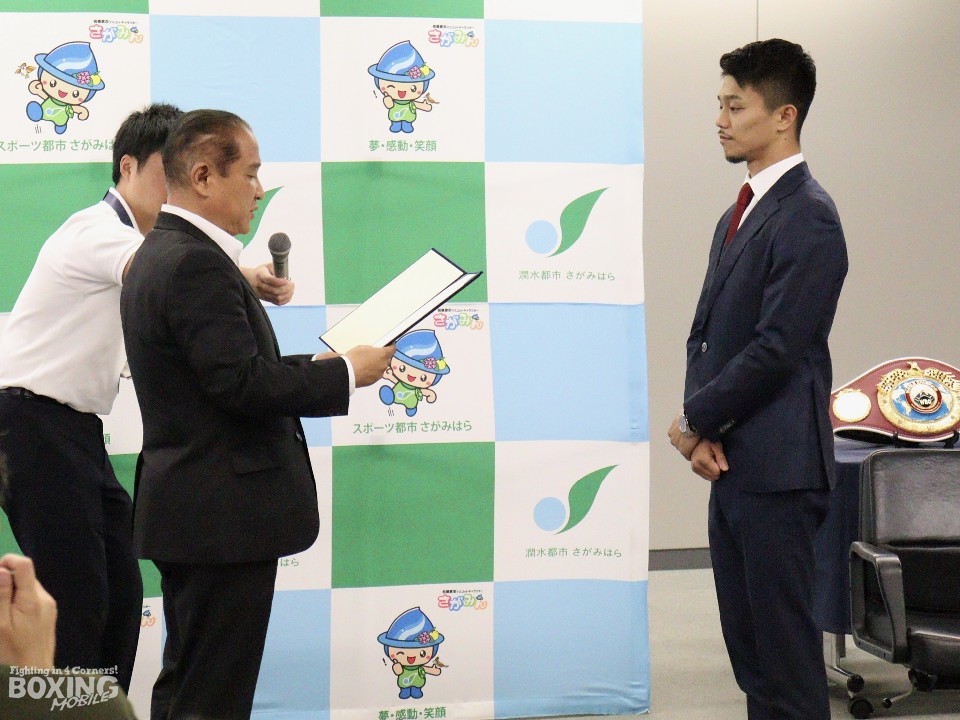 WBO(世界ボクシング機構)スーパーフライ級王者の中谷潤人(25=M・T)が1日、神奈川県相模原市役所で、相模原市ホームタウンアスリート認定式に出席した。