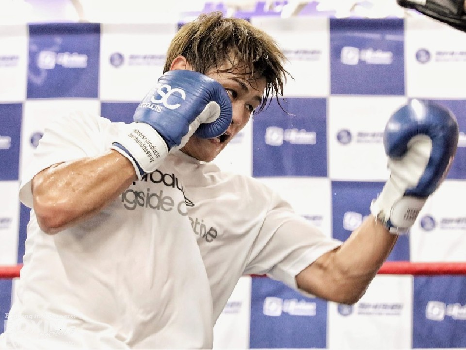 佐々木修平トレーナーとのミット打ちでは、キレ味抜群で正確無比なパンチを叩き込むと、緩急をつけたワンツーから強烈な左ボディを見せて、絶好調をアピール。たっぷりと汗をかいていた。次戦は、鮮やかなKO勝ちが見られそうだ!