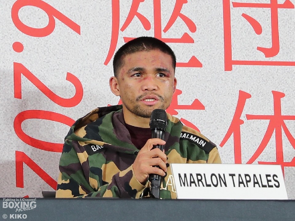 顔の傷はあったが、試合と同じくポーカーフェイスで会見に応じたタパレスは「まずは、今夜は幸運の女神が私に微笑まなかったが、神に感謝する。井上は予想通りうまかったが、何よりスピードに驚いた。井上のスピードに追いついていけず、自分のタイミングで試合をすることができなかった。10ラウンドのダウンは、井上のパンチがきれいに入ってしまった。すべてのパンチが強かった。この試合で自分のできることをやり尽くしたが、及ばなかった。これから井上と闘うボクサーには、『グッドラック』」 と苦笑いした。
