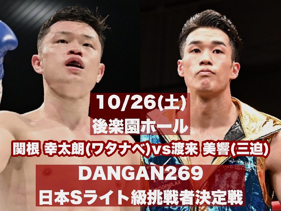 スーパーライト級は、同級1位の関根幸太朗(26=ワタナベ)と同級2位の渡来美響(25=三迫)による無敗対決。10月26日(土)に後楽園ホールで行われる。