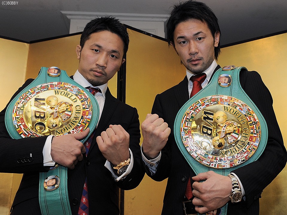 30日、ワールドプレミアムボクシングVol.15「The REAL」で開催される、WBC世界スーパーフェザー級王者"Genius"粟生隆寛(帝拳)と、WBC世界バンタム級王者"Lightning"山中慎介(帝拳)のダブル世界王座防衛戦の発表会見が都内で執り行われた。