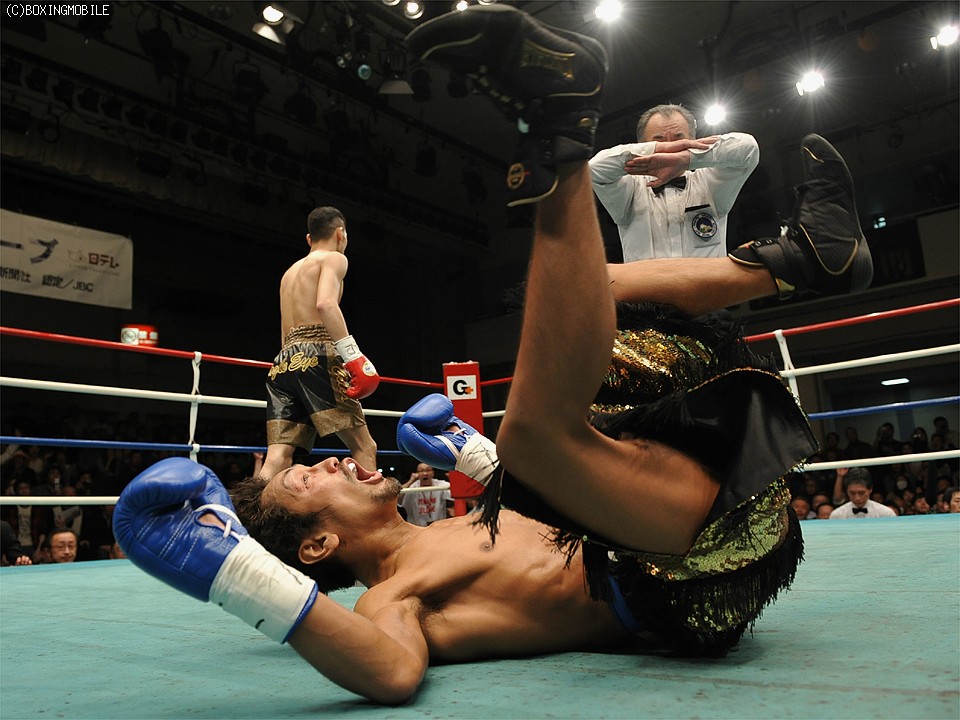 ゴングと同時に挑戦者・村井は上体を小刻みに振りかく乱するが、王者・岩佐はジャブで距離を測り、左ストレートを上下に打ち分ける。村井は上体を振り踏み込む機会をうかがうが、岩佐の距離に間合いを掴めない。すると王者の鋭いワンツーが挑戦者の顔面に突き刺さり、村井は前のめりにキャンバスへダイブ。何とか立ち上がる村井だが、足元から崩れ落ち10カウントが数えられた。