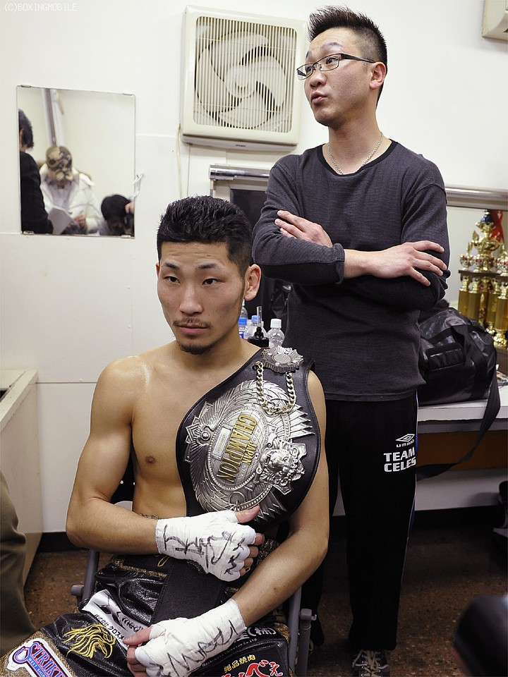 一方、鬼門の初防衛戦ながら、指名挑戦者を改心の一撃で退けた王者・岩佐亮佑は控え室に戻るなり、「試合前の練習も調子良く、アップでも動きが切れていた(笑)。まさかの1ラウンドKOは上出来ですね!!」と笑顔を見せ、初防衛戦はどんな課題を持って臨んだかと問われ岩佐は「自分のボクシングをすること。距離と力まないことを心掛けた。多少の緊張はあったが、肩の力は抜けていた。もう少し色々なことを試したかったが、勝てたことは良かった」とリラックスして戦えたとコメント。