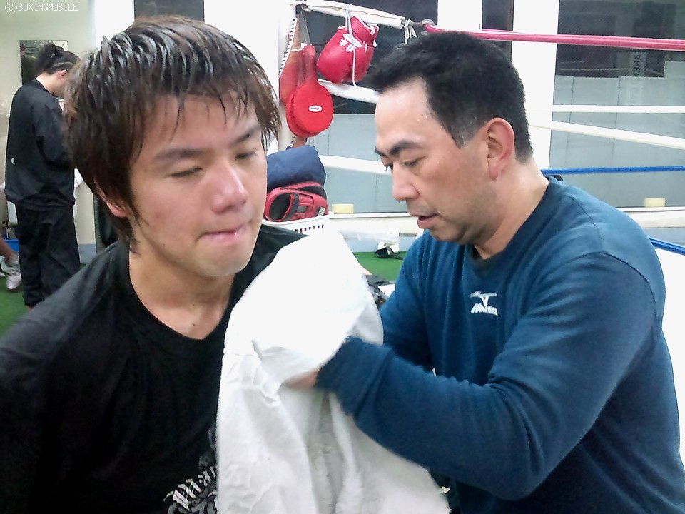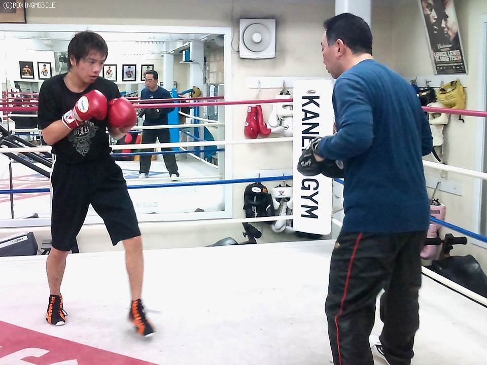 13日、都内・金子ジムで清水は、日本フライ級3位・村中優(フラッシュ赤羽)をパートナーに6ラウンドのスパーリングを行っていた。