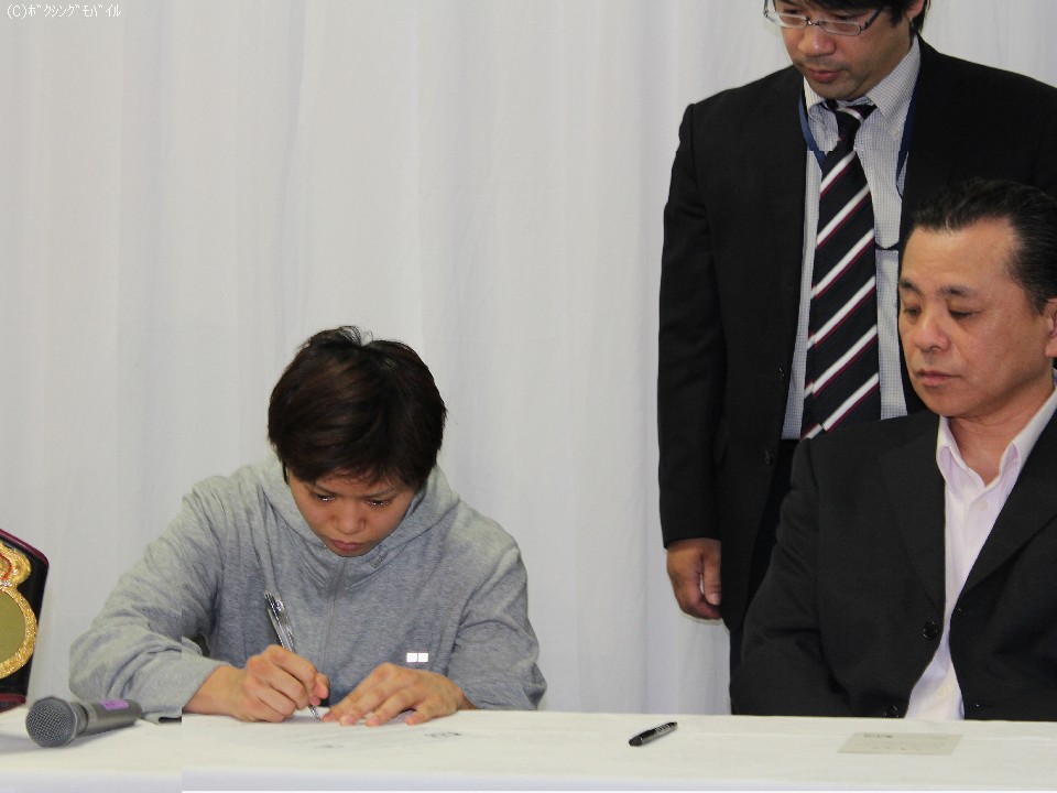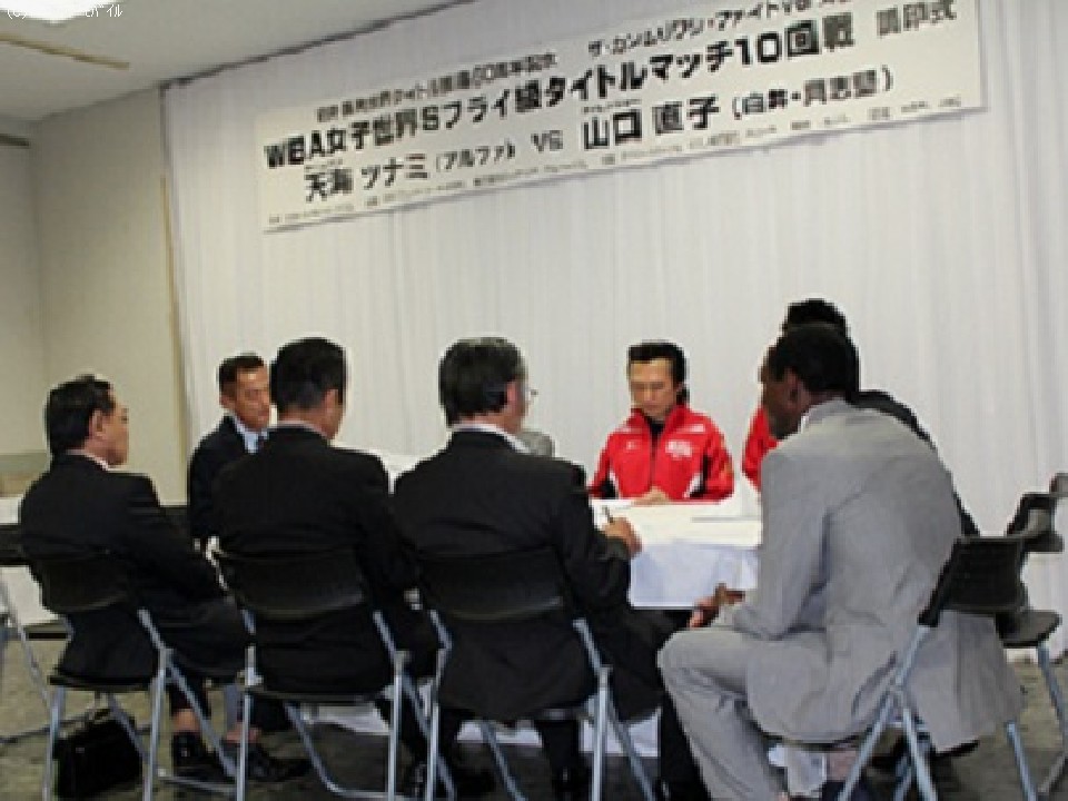 女子ボクシングの最高峰の戦い!国内女子プロボクシング解禁以来、ベストマッチと注目を集めるWBA女子世界スーパーフライ級タイトル戦『王者・天海ツナミvs挑戦者同級5位・山口直子』の前日計量と調印式が、都内のJBC特設会場にて8日の午後に執り行われた。