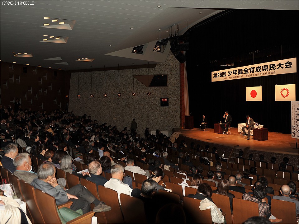 内山と渡辺会長は、駅前のキャンペーンに先立ち、県内で開かれた少年健全育成県民大会で講演を行った。埼玉県出身の世界王者は、自身の著書でもある「心は折れない」をテーマに、夢を持つことの大切さ、道を誤った時にはみんなで支えあうことが大事だと、自身の体験を交え熱く語った。