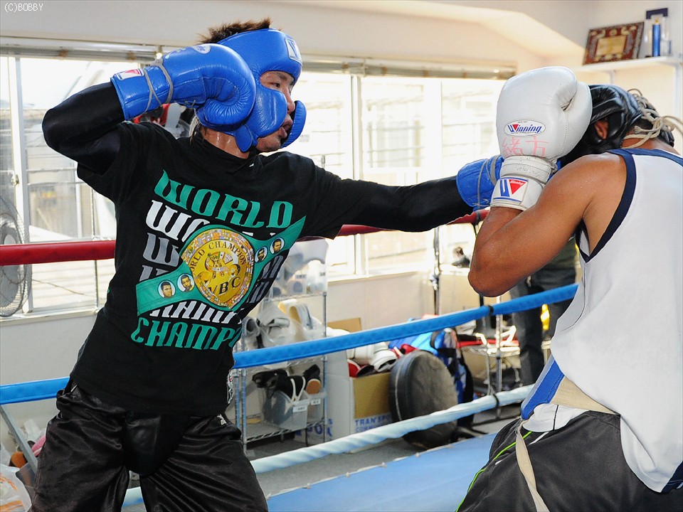 15日、都内・協栄ジムにおいて、大晦日にWBC世界同級5位・赤穂亮(横浜光)を挑戦者に迎え、2度目の防衛戦に臨むWBC世界スーパーフライ級王者・佐藤洋太が公開練習を執り行った。
